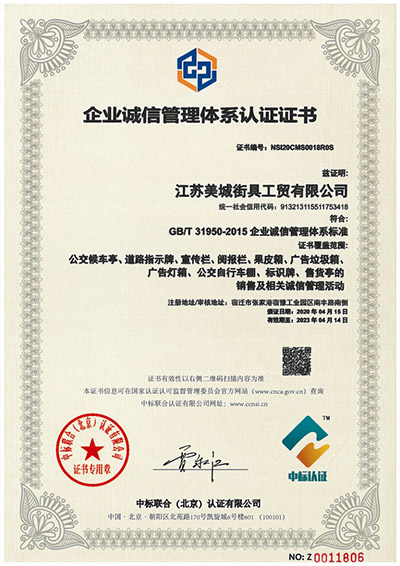 企業(yè)誠(chéng)信管理體系認(rèn)證證書