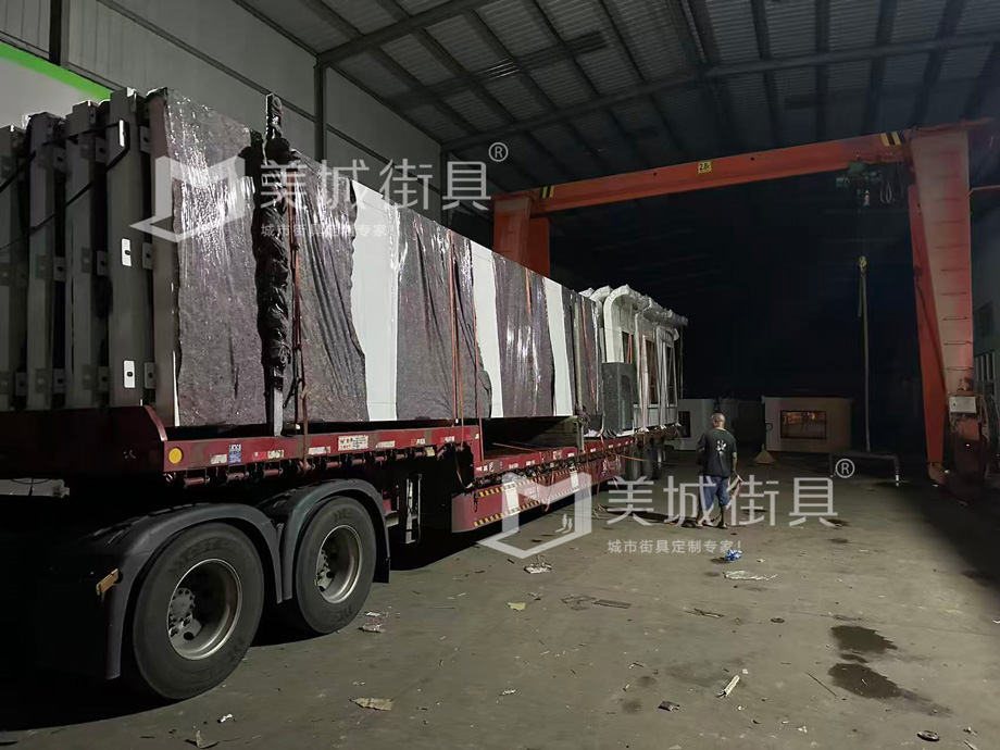 江蘇美城街具為新疆定制公交候車(chē)亭第五車(chē)發(fā)貨案例