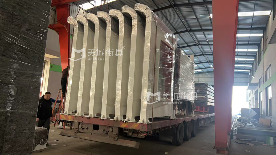江蘇美城街具為新疆定制第六批候車亭公交站臺發貨案例