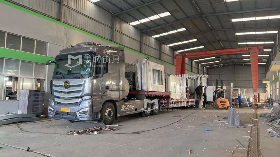 江蘇美城街具為新疆定制公交候車亭第五車發貨案例